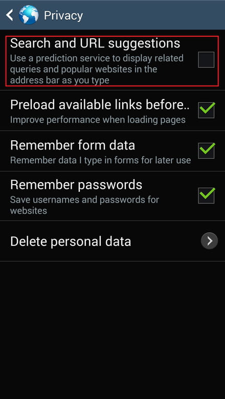 To disable the Search and URL suggestion feature of your Android web browser, follow the below procedure: