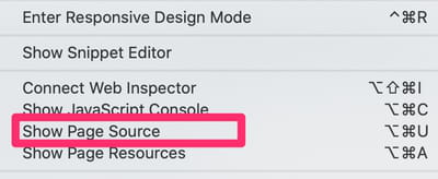 To be able to view the source code of a webpage under Safari, you first need to enable the Developer menu: