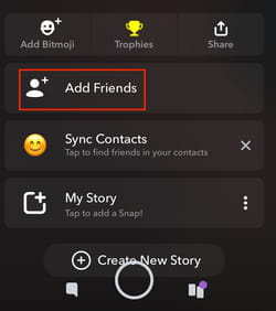 From this screen, you can choose to add your friends by syncing your phone's contacts or by searching for them directly in the app with their usernames.