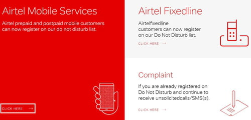Airtel DND website. In the red square titled Airtel Mobile Services, click the